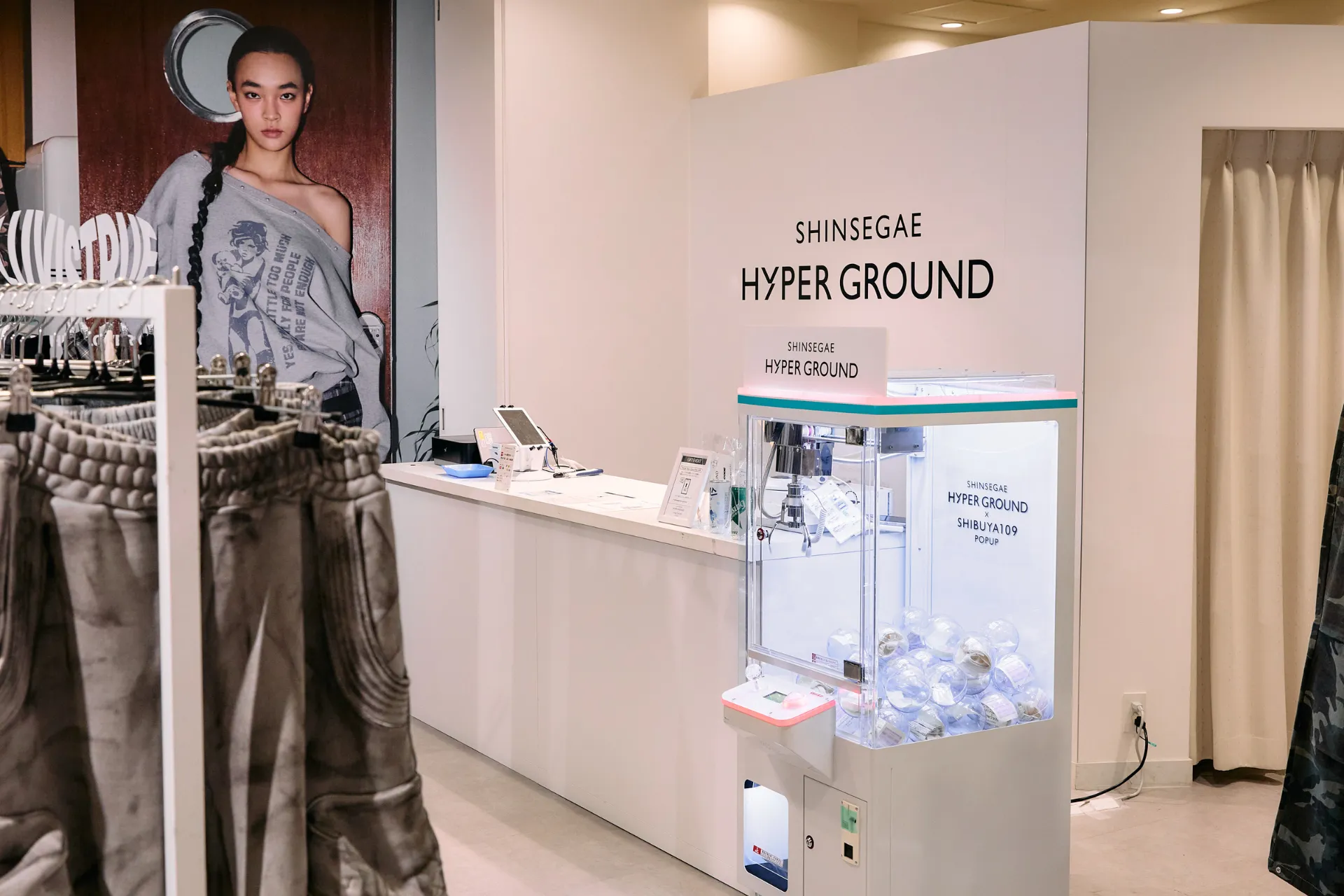 この動きはランウェイにとどまらない。「SHIBUYA RUNWAY」で可視化された“渋谷×ソウル”のムードは、同時にSHIBUYA109 のPOP UP「SHINSEGAE HYPER GROUND」でも表現され、渋谷全体で一つの流れとして立ち上がった。
