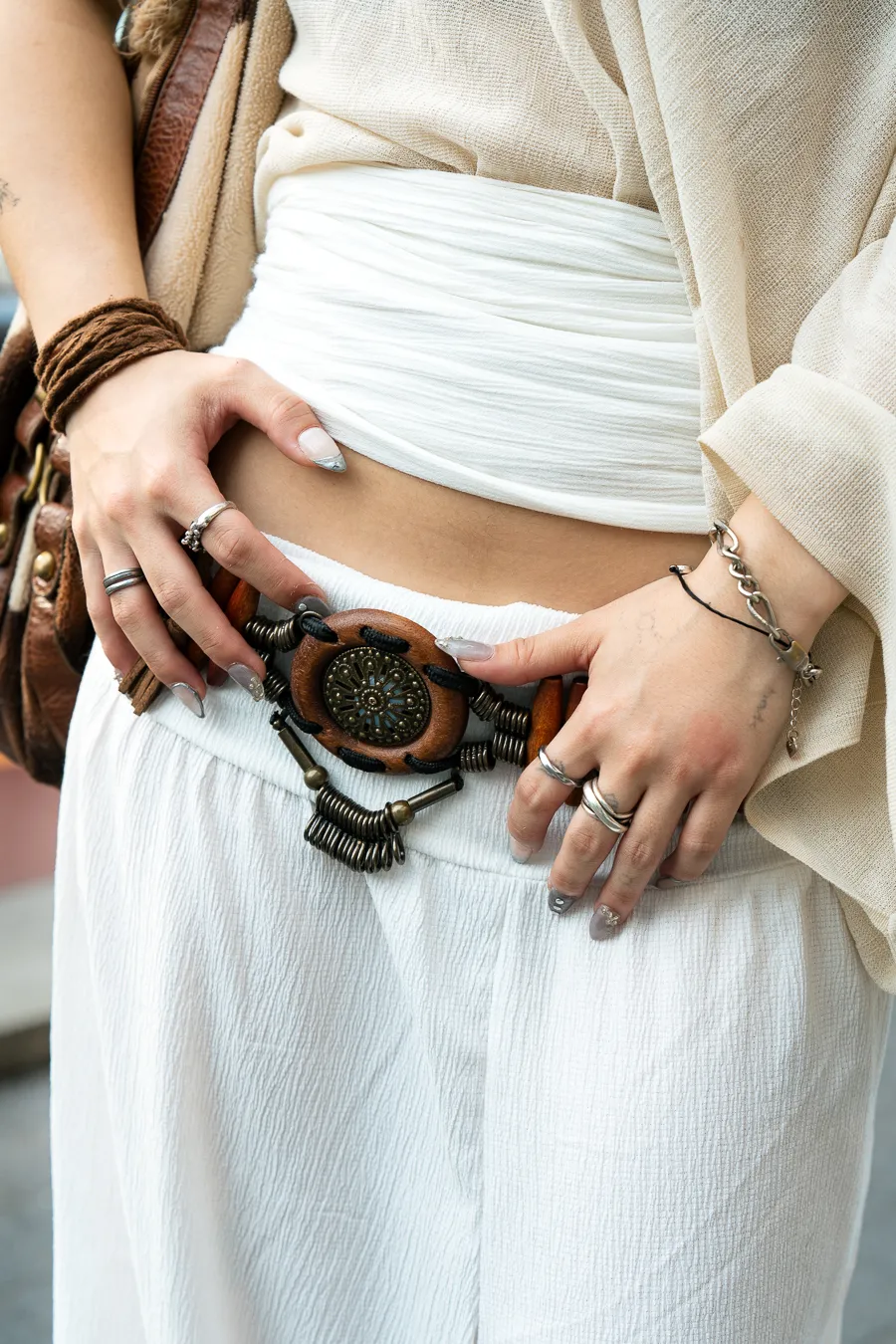 - 今日のコーデのこだわり : Nature tones with shell necklaces and earth tones colors