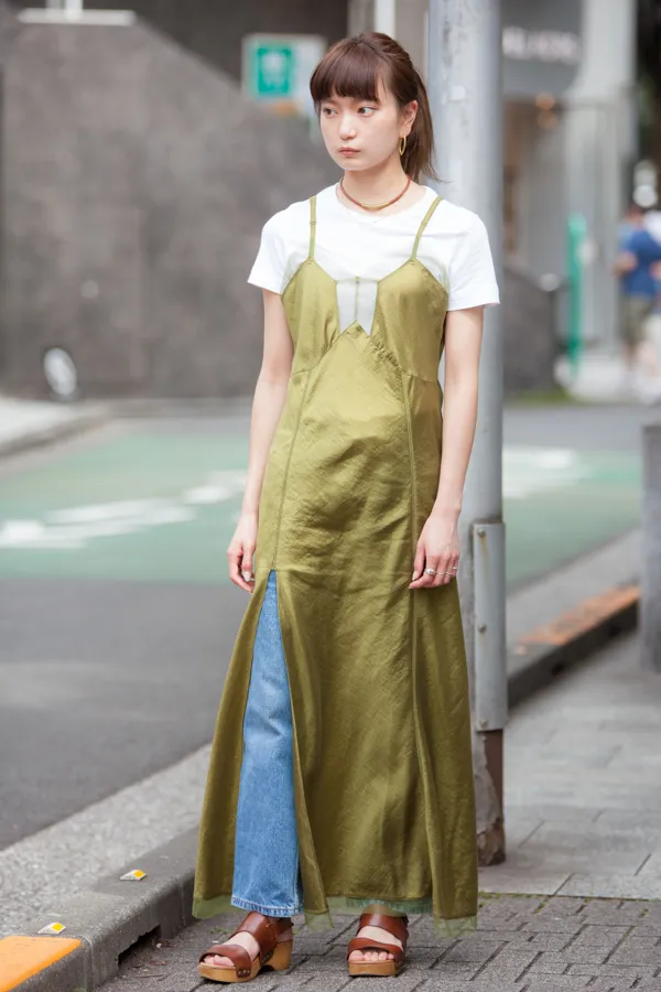 ワンピースとデニムのレイヤード