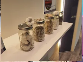 残念ながら撮影はNGでしたがミュージアムの入り口には、延岡ベンベルグ工場で実際に動いている紡糸機と巻き取り機の模型が展示されています。その機器で紡がれた原糸も触らせていただきました。ほんとうに柔らかくて軽く脆い。デリケートな繊維だとあらためて実感しました。
