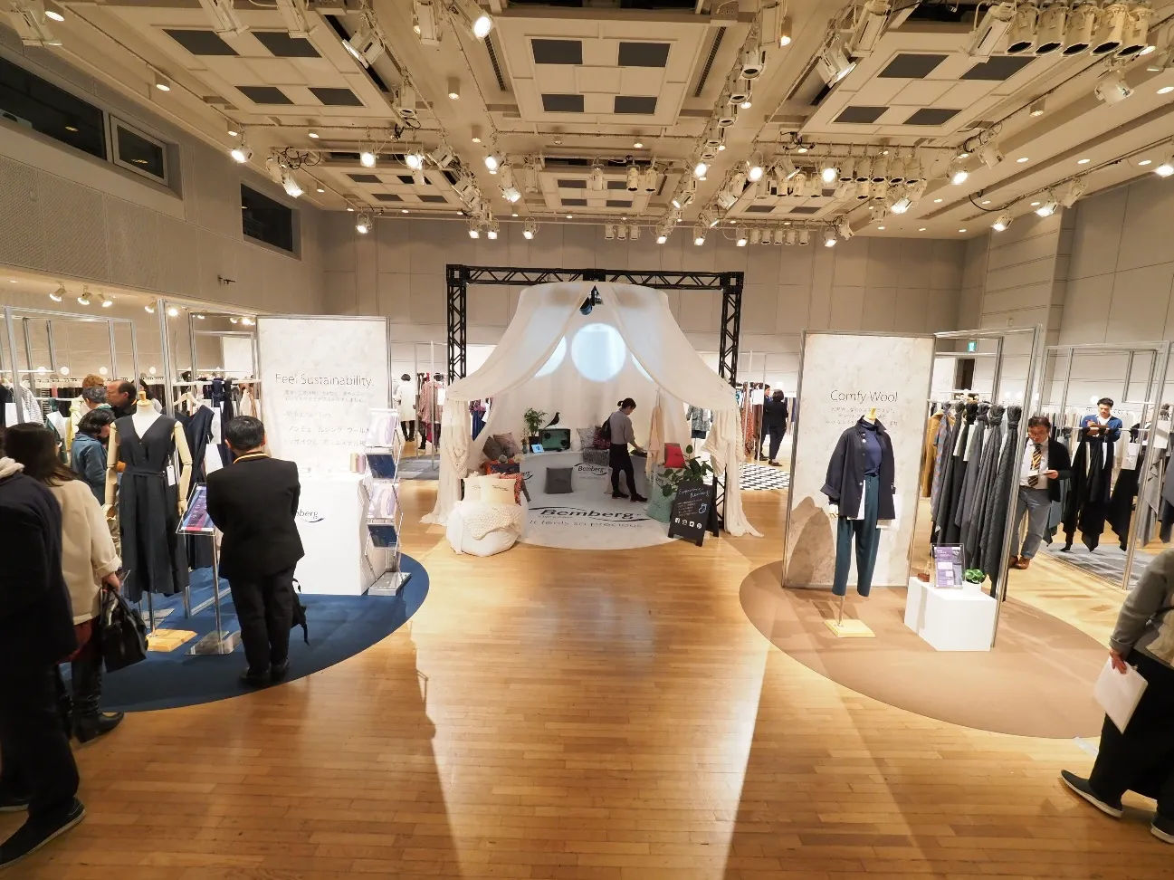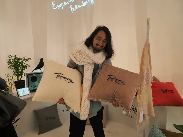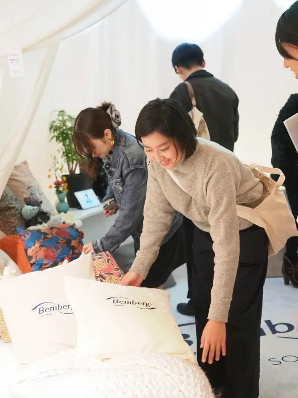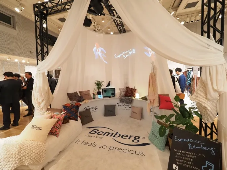 今回のアウター素材展は、”エクスペリエンス ベンベルグ”という名のもと、実際にベンベルグを触って体感してもらうということが大きなコンセプトになっています。全国津々浦々の産地、そして中国からも最新のラインナップを出展していただいて、とても充実した展示会になりました。