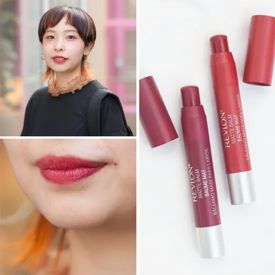 REVLONは見たままの色を発色できるため、自分の想像している唇に仕上げることができる。また、潤い成分が豊富に配合されていて、マットな質感でも乾燥することなく、潤いのある唇を持続できる。