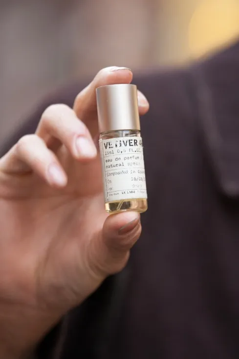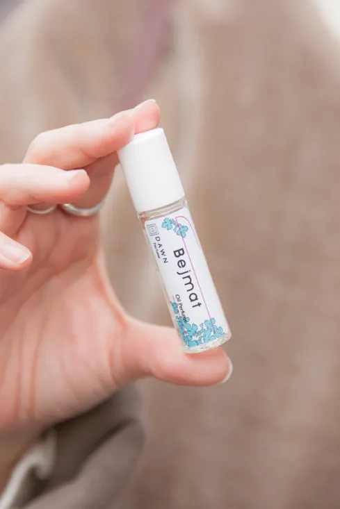③ちょっとお線香みたいな香りがお気に入り、頑張ろうって思える香りです。自分で選んでカスタマイズして作ったりもできる、「LELABO(ルラボ)」で購入しました。キャップが重かったり、ラベルが特徴的だったり、作った日付や名前を入れられたりと、ユニークなところも面白いなと思います。サイズ感も携帯するのにピッタリで、毎日バッグに入れてます。2日に1回くらいの頻度でつけてるけど、割と長持ちするところも◎