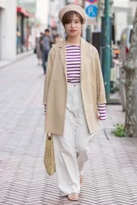 ワントーンコーデのポイントにボーダーをプラスした、ホワイトスタイル。