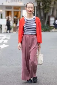 暖色アイテムをプラスすることで、さらに女性らしい可愛い印象に。