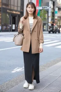 パンツと合わせるとカジュアルになりがちなので、そんな時はスカートを合わせると中和されます。