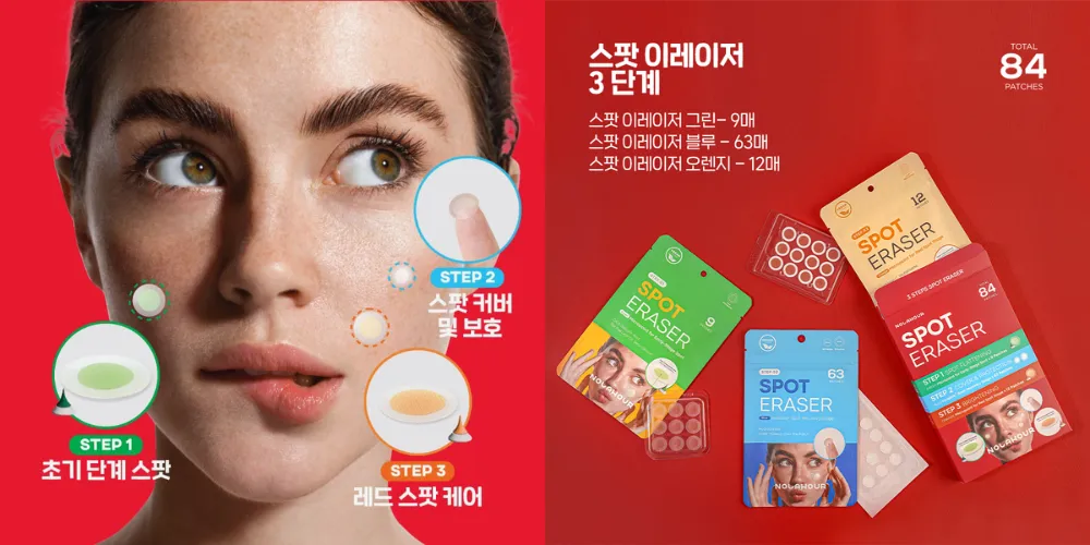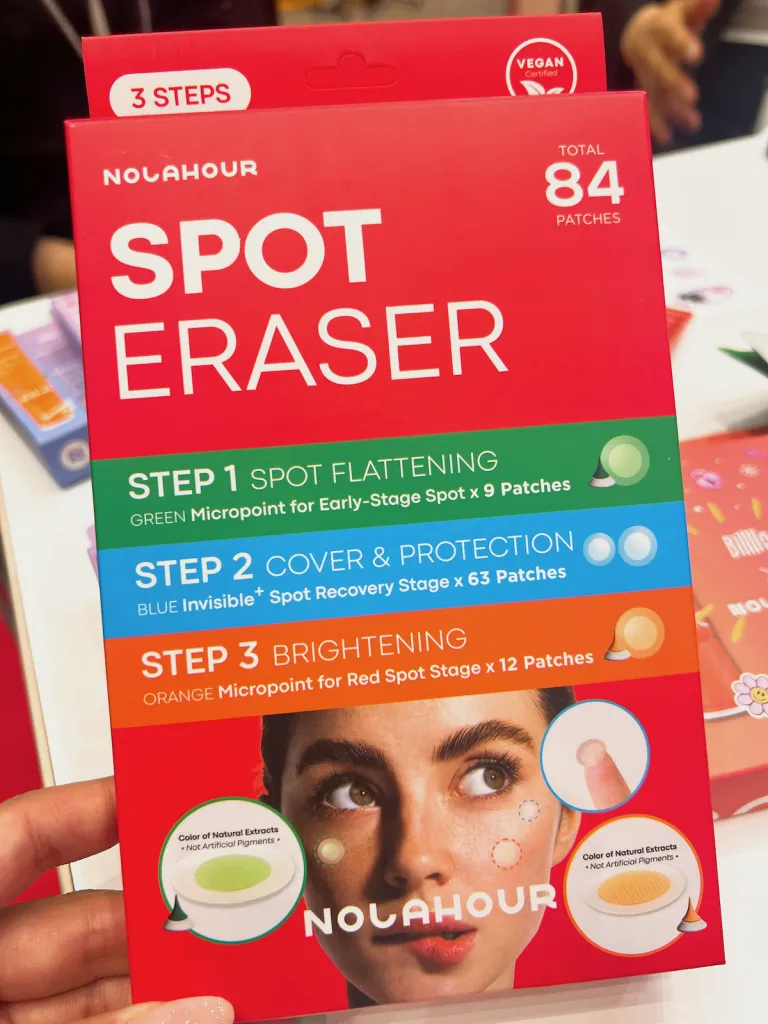 今韓国で大人気のアイドル”Billlie”とのコラボレーションでも話題の化粧品ブランド「NOLAHOUR(ノラアワー)」。1番の人気商品は「スポットイレイザー」という、3ステップのニキビパッチだ。韓国では当たり前のように、多くの方が使用しているニキビパッチだが、NOLAHOURの特長は、ニキビの状態別のシートを3段階にわけて使用しケアをするところ。天然エキスとニキビ鎮静成分を含むマイクロニードルを備えたパッチを貼ることで、ニキビを鎮静化し肌トラブルを健やかな状態へと導いてくれる。