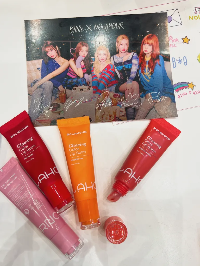 もうひとつのおすすめアイテムは、Billlieとコラボした「グローイング・カラー・リップバーム。カラーはSHY PLUM、CORAL PINK、SUMMER FIG、SHINING BERRYの4色展開。輝きのある、ウルツヤ感カラーの唇を作ることができるリップバームは、保湿力も備えた実力派だ。さらに本商品には、Billlieのフォトカードとオリジナルステッカーが付いてくることも嬉しいポイント。