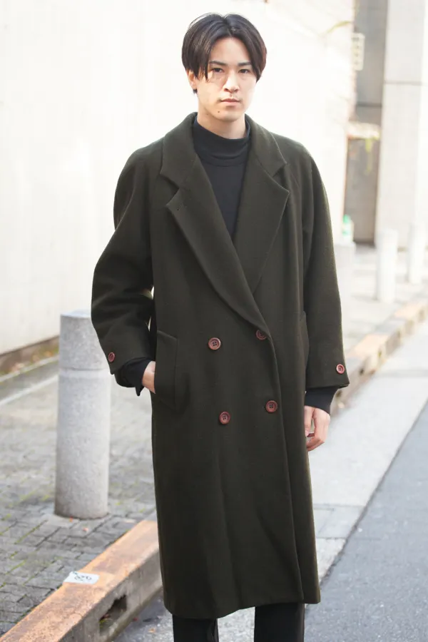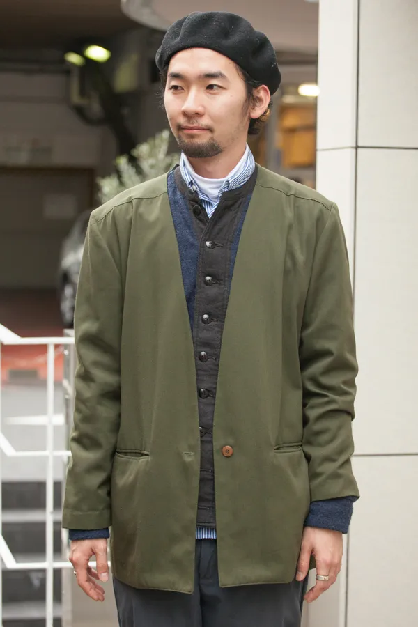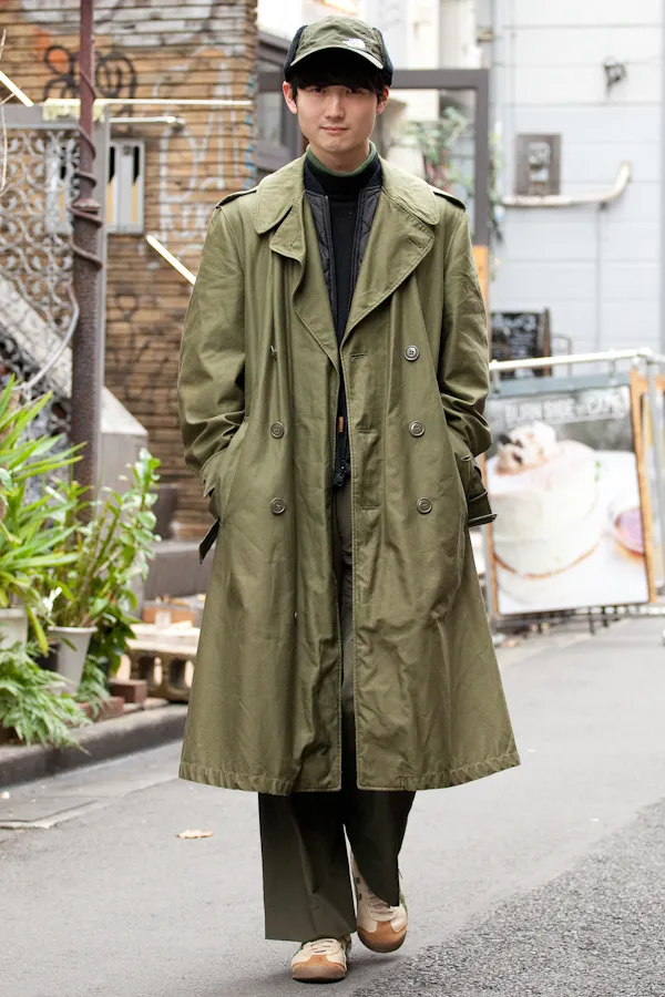 色の組み合わせで気になったのはベージュとのコンビが増えたこと。以前はベージュとネイビーの合わせがスタンダードだったが、今季はカーキが主流。イメージしているよりもカーキは意外と取り入れやすく、ブラックやブラウンとも合う為、普段のコーディネートに入れやすい。下記写真のように敢えてカーキワントーンに仕上げている人も増加した。また、ブラックワントーンやネイビーワントーンに一点投入する着こなしにもハマる。カーキを使う上で大事なポイントが、土くさくならないようにすること。色味は勿論だが、靴や小物で品や上質感を入れ、クリーンさを失われないようにするのが重要だ。