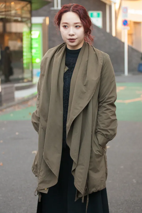 2016-17 A/W トレンドカラーとして話題になった「テラコッタ」。テラコッタはイタリア語でTerra Cotta、英語ではBaked Earth、つまり「土(粘土)を焼いた」状態のことを示す。具体的にはブラウンにオレンジが混ざったような煉瓦カラーで、素焼き独特のヴィンテージ感と渋さ漂う、ニュアンスカラーだ。昨年の晩夏には大人カジュアルやオフィスカジュアル、レディライクなコーデに欠かせない秋冬カラーとして注目されていた。しかし、実際は着用率が低く、ベージュやグレーなどのキレイ目に合わせられる定番カラーの勢いに押された。そんな中で、今季最も印象強いカラーと言ったら「カーキ」だ。男女共に幅広い層から受けが良く、テラコッタを抑え、推しカラーNo.1となった。