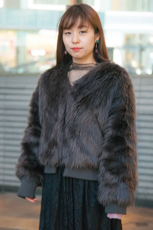 Choyoのファーは豊富なカラーバリエーションが特徴的だったのに対し、ストリートで一足先に馴染んだのは、「キャメル」。ゴージャス路線ではなく、ジーンズやスニーカーを合わせ、カジュアルに仕上げるのが今流。また毛足が短く整えられていることにもメリットがあり、全体のフォルムが丸みをおびて見える。“毛(ファー)を着ている”という派手さや高級感は少ないものの、その丸みからファーの温かさやモコモコ感は伝わってくる。むしろオーバーサイズのアウター感覚で着られているような印象だ。