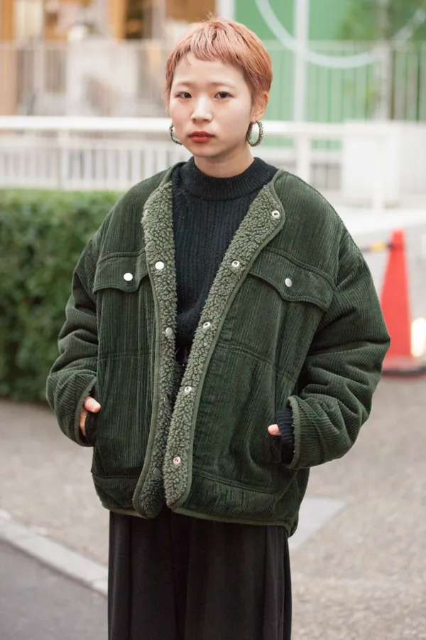ワイドパンツに代わって、新たなコーデュロイアイテムとして名乗りを上げたのはジャケット。中でも人気が集中したのは「コーデュロイボアジャケット」である。袖口と襟元のボアが更に季節感を漂わせ、秋冬コーデにうってつけのアウターだ。ボアとコーデュロイ、今までに無かった2つのトレンド素材を競演させたアイテムだけに、ファッショニスタもこぞって愛用している。