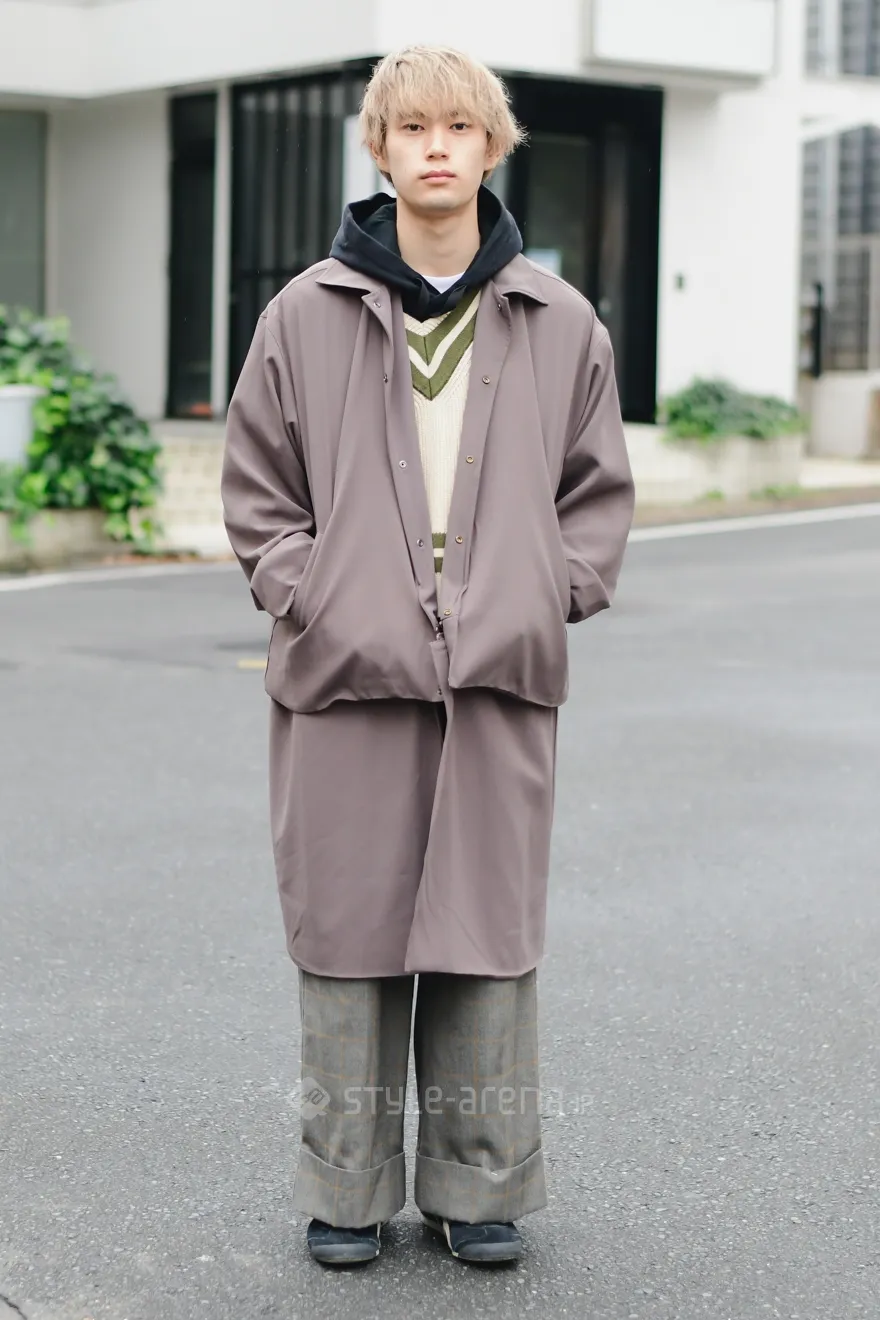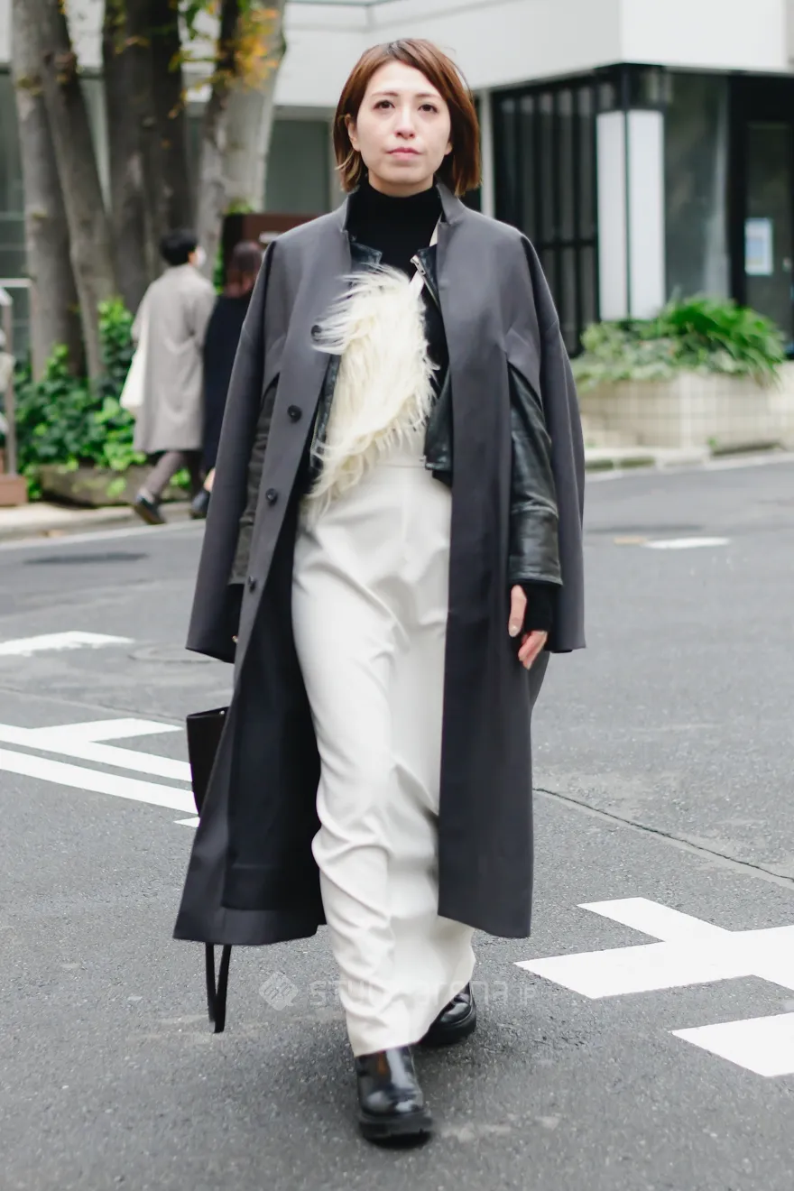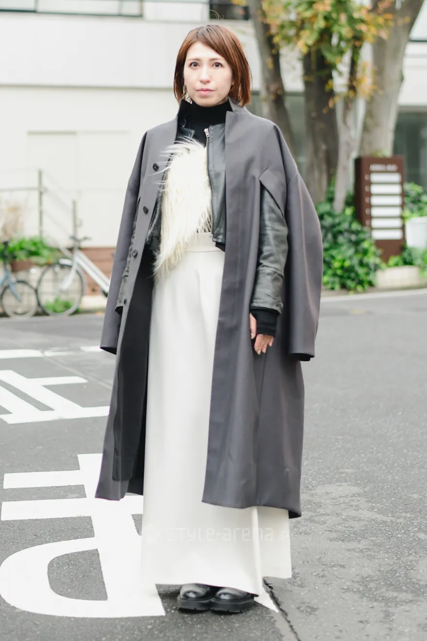 STREET STYLE東京ストリートスタイル STYLE NO. 20221201-9 まえちゃんさん 代官山 / 2022年12月1日撮影 年齢: 35 職業: 広告代理店 身長: 161㎝ instagram: @yukichoco.18 着用アイテム/ブランド コート : HARUNOBUMURATA ジャケット : used ニット : FETICO スカート : Meisme ブーツ : ZARA ハンドバッグ : HARUNOBUMURATA 今日のコーデのこだわり : ファー:Mediam 好きなブランド : HARUNOBUMURATA,FETICO Share STYLE NO. 20221201-8 ショウゴさん 代官山 / 2022年12月1日撮影 年齢: 22 職業: 美容師 身長: 169㎝ instagram: @shogo_hair 着用アイテム/ブランド コート : AIMNAIM ベスト : HARE カットソー : Y-3 パンツ : used スニーカー : Onitsuka Tiger ショルダーバッグ : used 好きなブランド : AIMNAIM よく行くショップ : TAKEO KIKUCHI Share SNAP View More