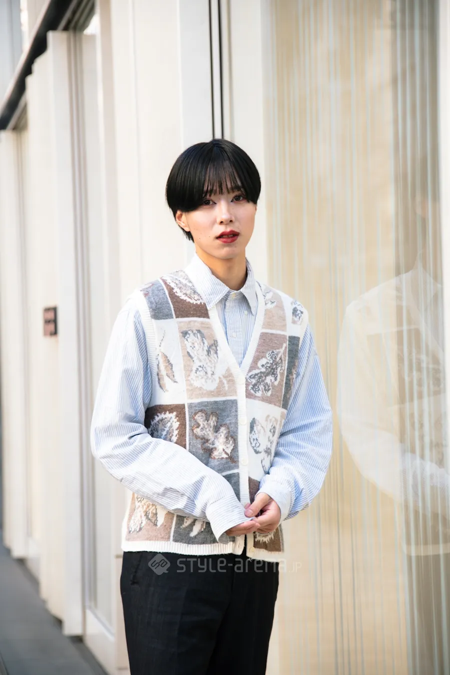 STREET STYLE東京ストリートスタイル STYLE NO. 20240213-5 Kさん 銀座 / 2024年2月13日撮影 年齢: 22 職業: 大学生 身長: 165㎝ instagram: @qanaco 着用アイテム/ブランド コート : MaxMara ニット : UNIQLO パンツ : UNITED TOKYO スニーカー : FENDI ショルダーバッグ : FENDI 今日のコーデのこだわり : ピアス・イヤリング・カフ:BVLGARI 今日の小物へのこだわり : ネックレス:BVLGARI 好きなブランド : FENDI よく行くショップ : FENDI Share STYLE NO. 20240213-4 をしんさん 銀座 / 2024年2月13日撮影 年齢: 21 職業: 学生 身長: 176㎝ instagram: @f_yanyan_46 着用アイテム/ブランド コート : ECRIRE ベスト : 不明 シャツ・ブラウス・チュニック : ノーブランド パンツ : ノーブランド ブーツ : ノーブランド ショルダーバッグ : LA VORAGINE よく行くショップ : 古着屋 Share SNAP View More