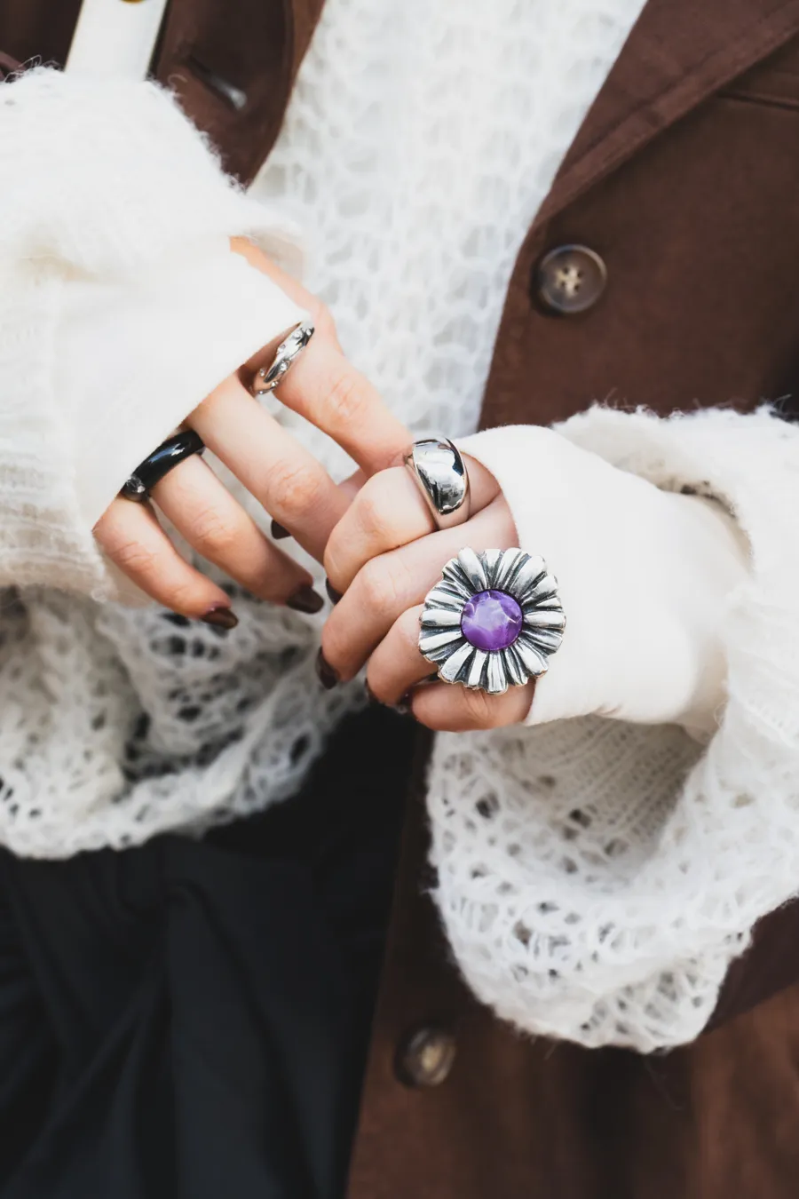 - 今日の小物へのこだわり : リングはシルバーで バックを白に甘めすぎないように