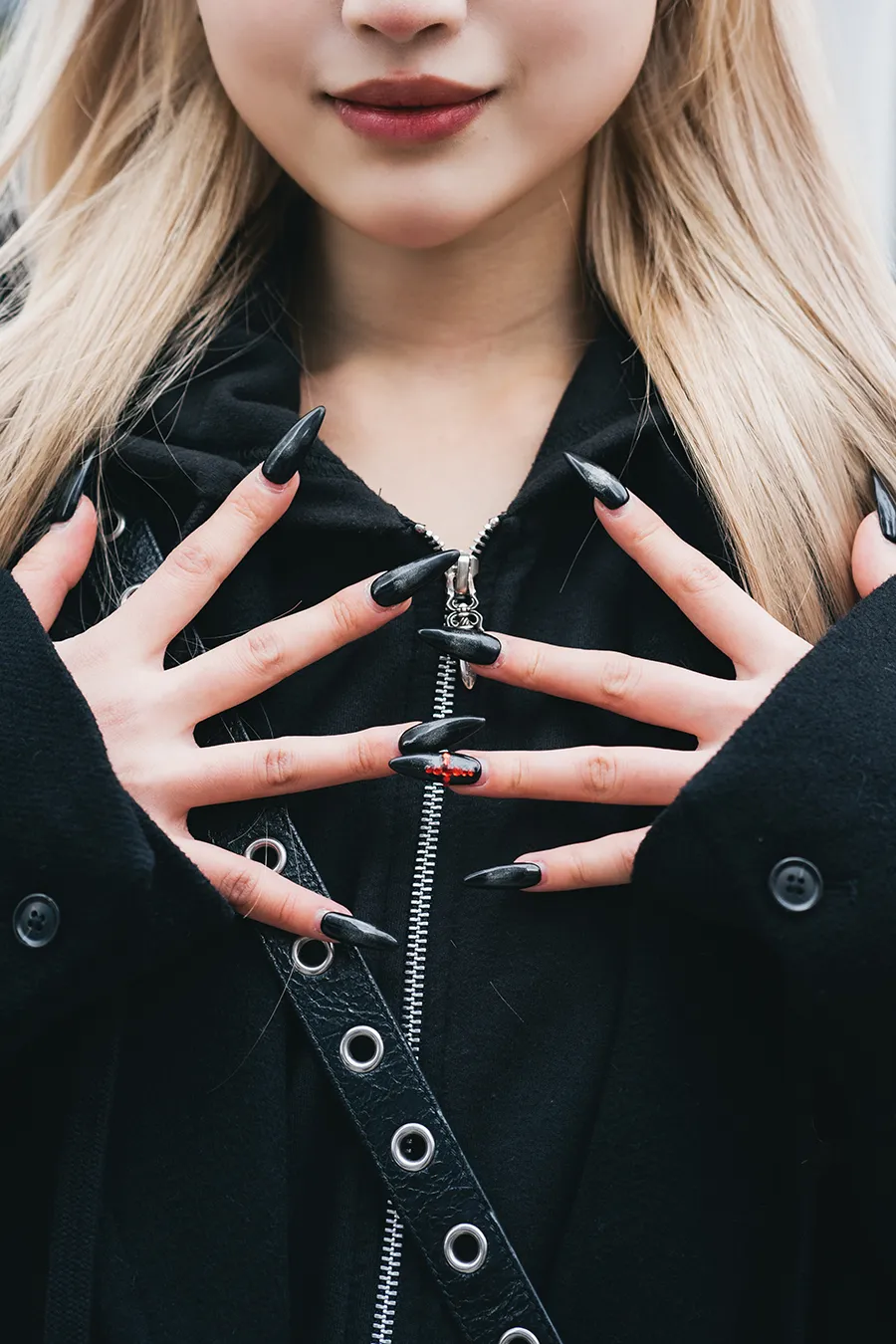 - 今日のコーデのこだわり : 全身が黒であえて靴を髪に合わせてベージュに ロングコードにパーカー
