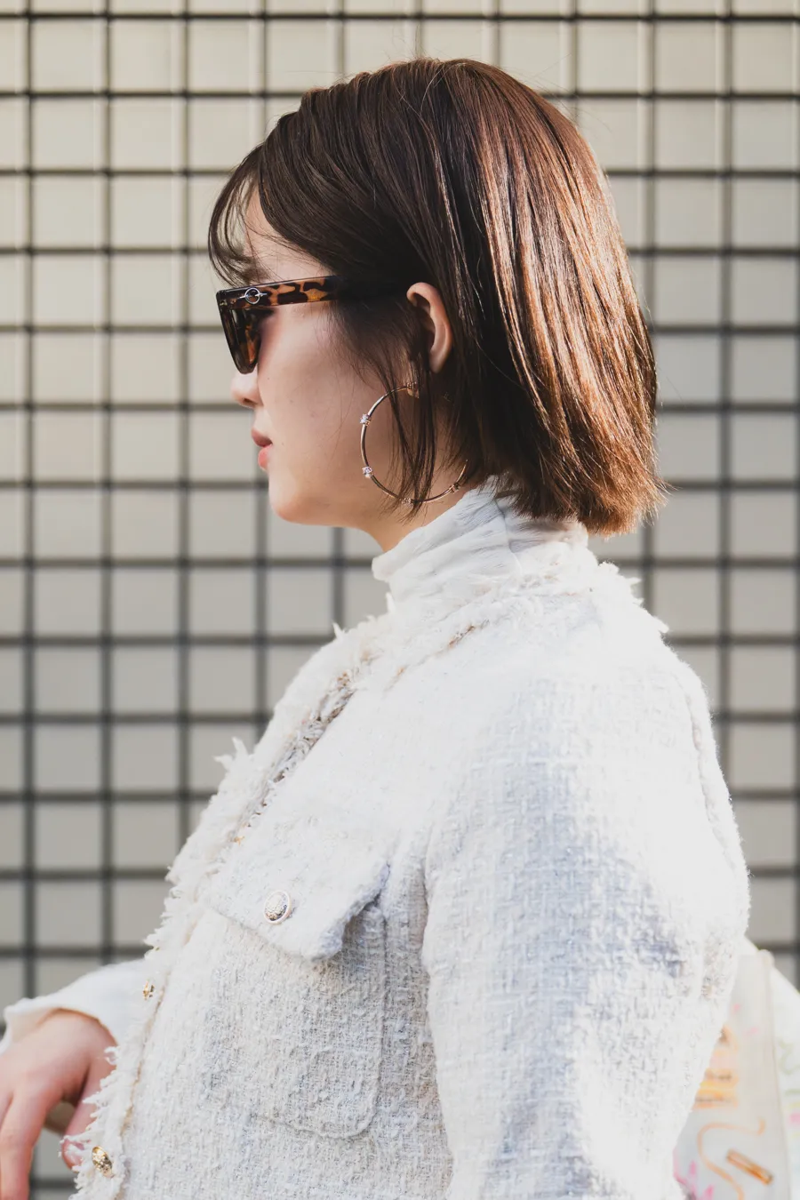 - 今日の小物へのこだわり : 髪型がボブなので大きめのピアスで