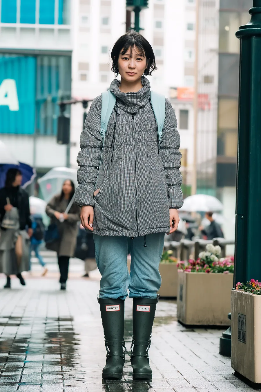 - 今日のコーデのこだわり : 春っぽいカラーで雨だからHUNTERのブーツを中心に組んだ
