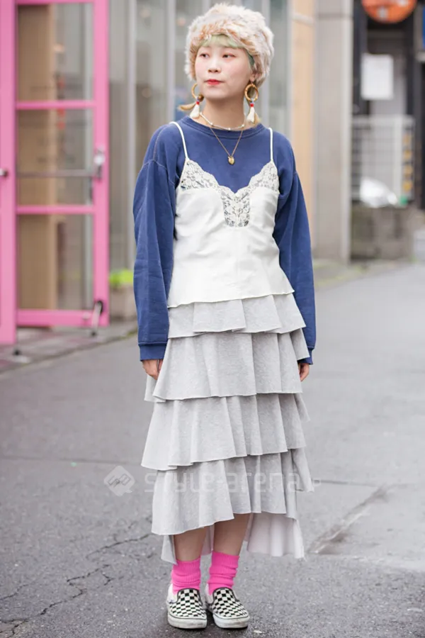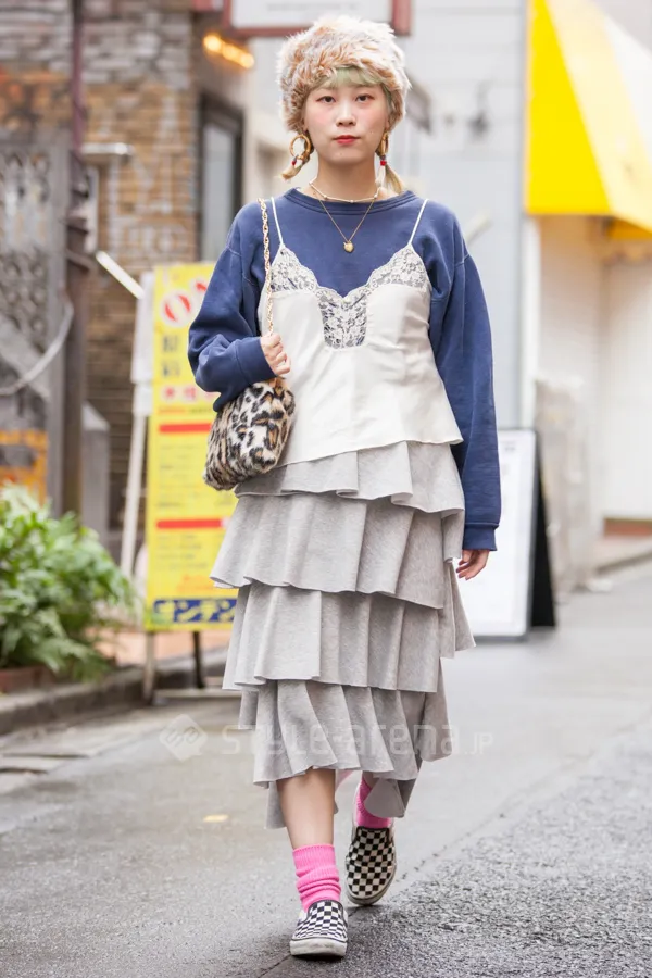 STREET STYLE東京ストリートスタイル STYLE NO. 20181023-2 みなみさん 原宿 / 2018年10月23日撮影 年齢: 21 職業: 美容師 身長: 155㎝ instagram: @not_south_ 着用アイテム/ブランド コート : RED SEAM ワンピース : used ニット : UNIQLO スカート : used スニーカー : adidas エコバッグ : 1LDK 今日のコーデのこだわり : 靴下:UNIQLO 好きなブランド : Maison Margiela よく行くショップ : 10-9,OTOE,DEPT TOKYO Share STYLE NO. 20181023-1 ホトハラさん 原宿 / 2018年10月23日撮影 年齢: 22 職業: アパレル 身長: 158㎝ 着用アイテム/ブランド キャップ・その他 : used カットソー : used カットソー : used スカート : STYLE NANDA スリッポン : VANS ショルダーバッグ : Casselini 今日のコーデのこだわり : チョーカー:Casselini 今日の小物へのこだわり : ネックレス:Aquvii 好きなブランド : Casselini よく行くショップ : OTOE Share SNAP View More