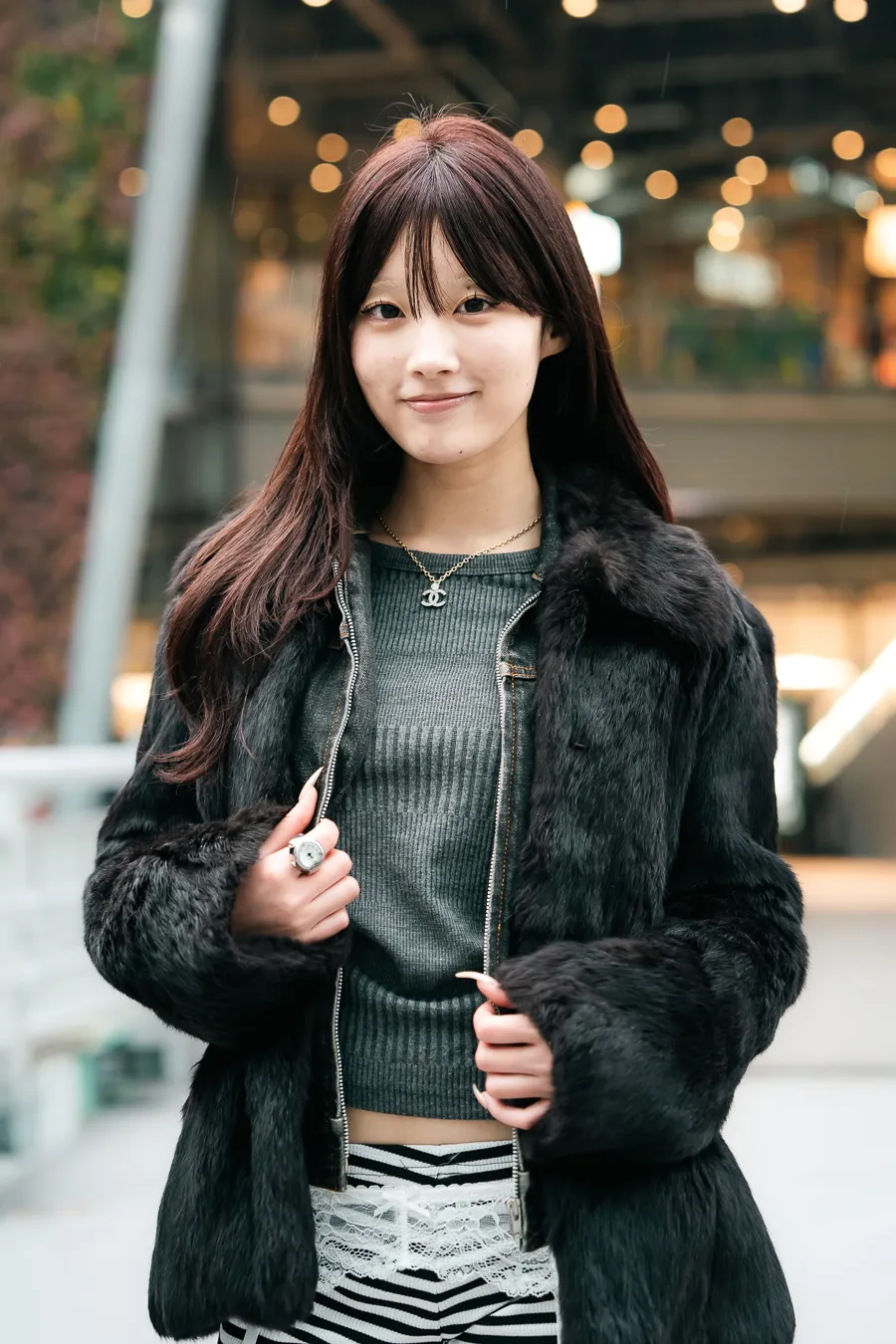 - 今日のコーデのこだわり : グレーを間に入れて組んだ ファーとブルゾンセットが欲しくて、重ね着したのがポイント