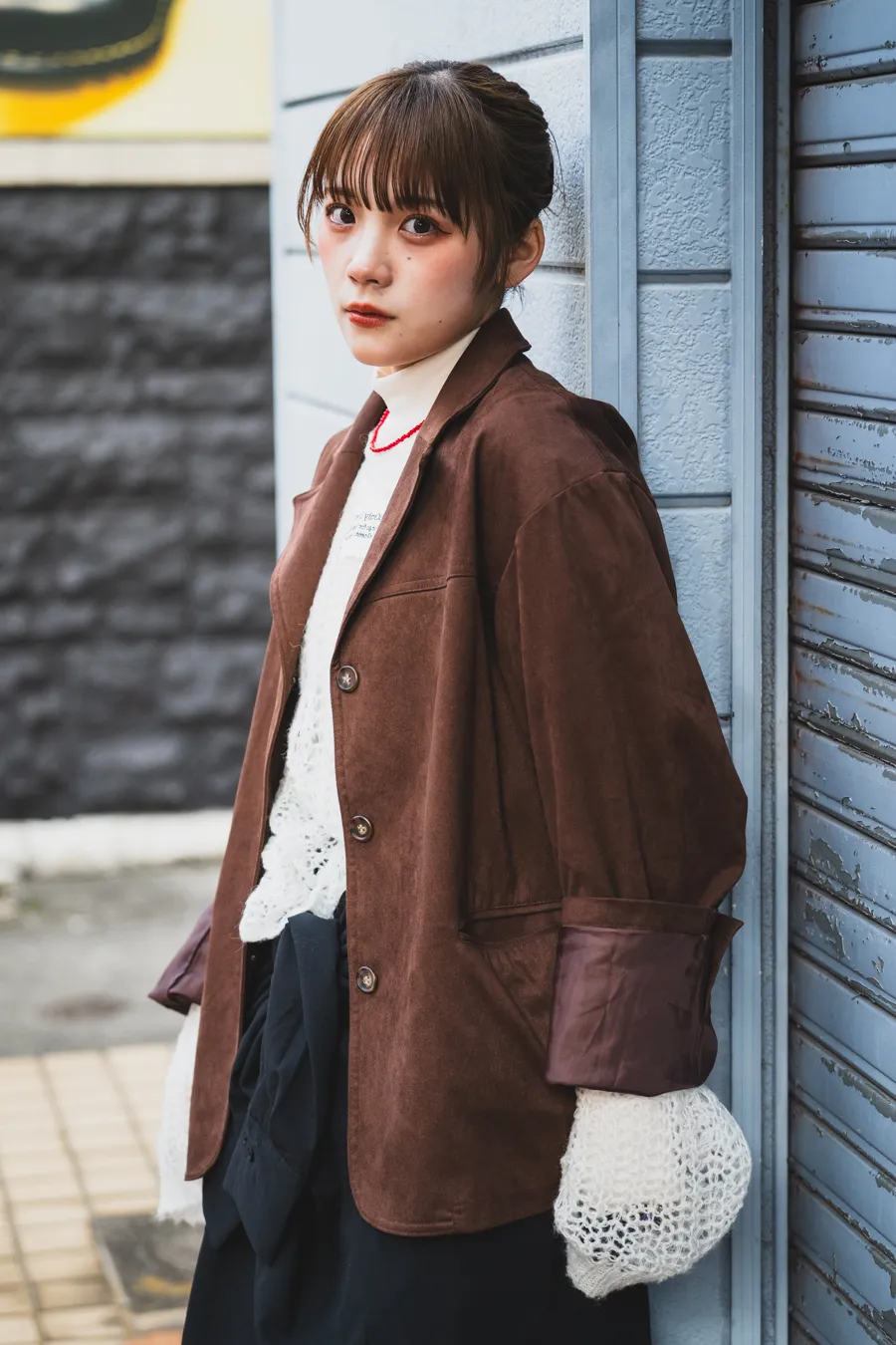 - 今日のコーデのこだわり : ニットを着たかったから、スエードジャケット合わせた