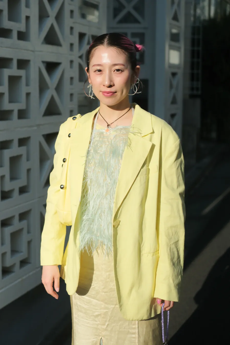- 今日のコーデのこだわり : 配色を組み合わせるのが好きなので水色の黄色を組み合わせた
